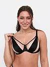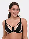 Сшивна чашка з діагональним членуванням формує природну округлу форму грудей без використання поролону. Глибокий виріз декольте поєднується з високим підйомом тканини на бретелях, створюючи ефект легкого ліфтингу та гарну лінію бюста. Еластична окантовка по краю чашки забезпечує ідеальне прилягання та комфорт протягом усього дня.