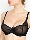 М’яка сітчаста чашка, оздоблена комбінацією чорної та тілесної сітки, створює ніжний напівпрозорий ефект. Модель на кісточках із регульованими бретелями забезпечує надійну підтримку та зручну посадку. Декоративний бантик посередині додає романтичного акценту. Ідеально поєднується з трусиками з цієї ж колекції.