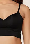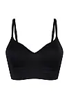 Виконаний у класичному чорному кольорі, цей бра має м’які формовані чашки без каркасів, що забезпечують природну посадку без тиску. Регульовані тонкі бретелі дозволяють точно підлаштувати топ під фігуру. Високоякісна тканина приємна на дотик і відчувається як друга шкіра.