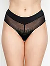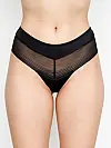 Класична посадка м’яко охоплює талію, а спинка відкритого крою красиво підкреслює лінію сідниць. Напівпрозорі сітчасті елементи спереду та ззаду додають виробу нотку чуттєвості, водночас залишаючись непомітними під одягом. Легкий геометричний візерунок створює стильний акцент.