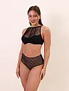 Модель виконана в елегантній кольоровій гамі чорного та тілесного, а трендовий візерунок у горошок додає легкості та грайливого акценту. Висока лінія талії візуально подовжує силует і гармонійно пасує до одягу з будь-якою посадкою. М’яка, але щільна посадка забезпечує комфорт протягом усього дня, а повне покриття сідниць підкреслює природну форму.