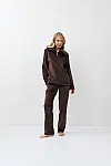 Верх — вільного крою з довгими рукавами. Високий комір із напівблискавкою у формі серця кольору хром — для зручності та стильного акценту. Штани — прямого крою для комфорту та елегантності.