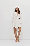 Витончене опрацювання спинки та безшовна конструкція коміра створюють акуратне, довершене оздоблення. Халат оснащений внутрішнім регульованим шнурком і зовнішнім поясом-зав’язкою для зручної та універсальної посадки.
