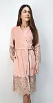 Розкішний халат від українського бренду Shato — це поєднання елегантності, комфорту та витонченого стилю. Модель пудрового кольору виготовлена з м’якого приємного до тіла велюру, має довгі розширені рукави та пояс на запах. Широкі мереживні вставки на рукавах і по низу додають вишуканості, перетворюючи цей халат у справжню прикрасу вашого домашнього гардеробу.