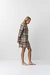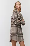 Фланелева бавовняна тканина з позачасовим візерунком у велику клітинку. Модель має оверсайз фасон у сорочковому стилі і контрастне окантування навколо горловини та на спинці. Скошені вирізи знизу заабезпечують свободу рухів і зручнїсть.