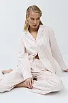 Класичний та романтичний піжамний комплект зі штанами з яскраво-рожевими смужками на світло-рожевому фоні від Aruelle!