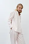Верх у стилі сорочки із заокругленим низом, довгими рукавами та прозорими ґудзиками.