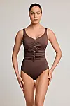 Жіночий суцільний купальник David — елегантна модель преміум бренду в коричневому кольорі, виготовлена в Італії. Купальник має ущільнену чашку B/C/D, яка добре підтримує бюст і формує гарний силует. Суцільний крій забезпечує комфортну посадку та підкреслює фігуру. Якісні матеріали та акуратна обробка гарантують зручність під час відпочинку на пляжі або біля басейну.