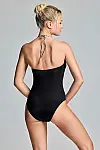 Купальник виконаний зі стильним принтом у чорному та тілесному кольорах, що виглядає елегантно та підкреслює силует. Модель має ущільнену чашку на об'єм B/C без кісточок і без push-up, із знімними вкладишами для комфортної підтримки грудей. Суцільний крій забезпечує зручну посадку та комфорт під час відпочинку на пляжі або біля басейну.
